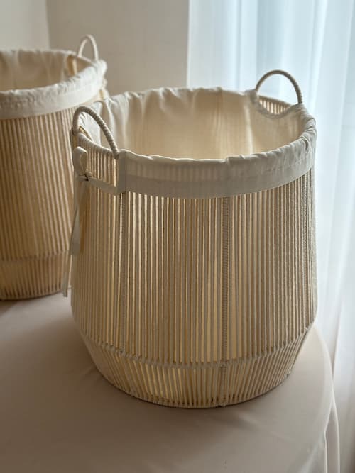 سبد خمره ای مکرومه با طراحی خاص کاربردی موجود در مجموعه هنری زیگات میباشد که توسط هنرمندان مجموعه طراحی و تولید میشود.
